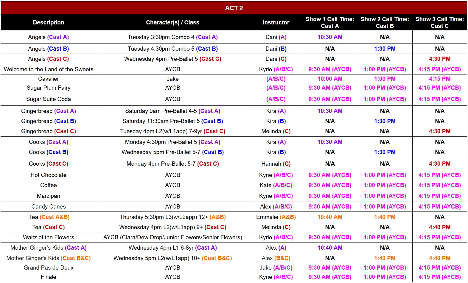 Dec 6: Nutcracker Shows (11am, 2pm, 5pm) *Call Times Below