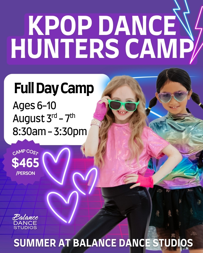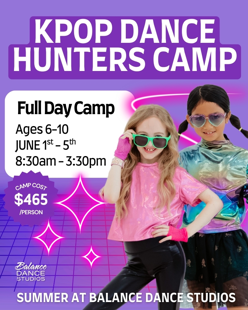 Level up your dance skills and performance confidence in this high-energy, K-Pop–inspired dance camp! KPop Dance Hunters is designed for dancers who love bold choreography, powerful movement, and dynamic group routines. Campers will learn upbeat, age-appropriate choreography inspired by K-Pop style, focus on musicality and performance quality, and build confidence through teamwork and stage presence. Perfect for dancers who want to move big, perform strong, and feel like part of a high-impact dance crew.