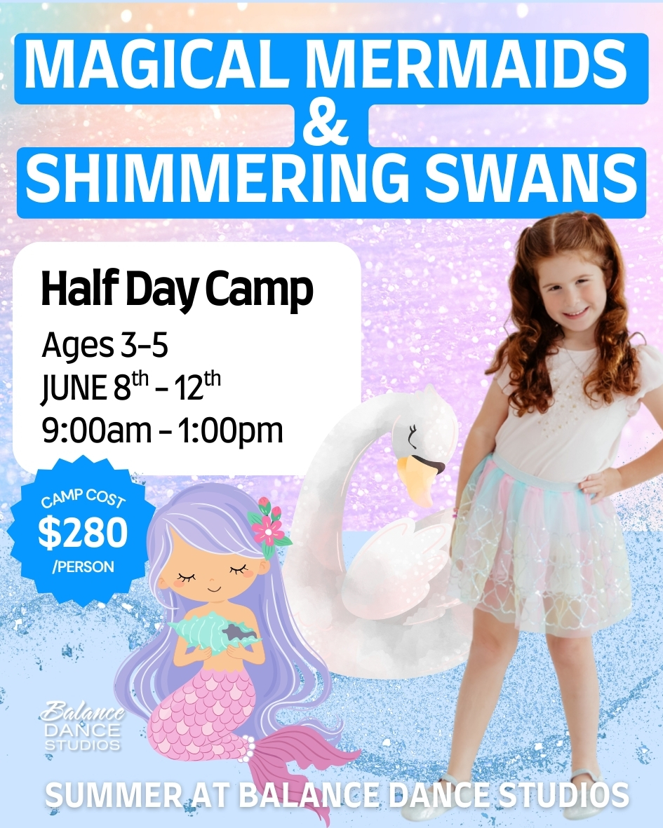 Dive into a sparkling dance adventure where mermaids glide and swans soar. This ballet-inspired camp introduces graceful movement and creative expression through storytelling, gentle technique, and imaginative play. Dancers explore flowing choreography, whimsical games, and themed crafts in an enchanting environment designed to build confidence, coordination, and a love for dance through magical make-believe.
