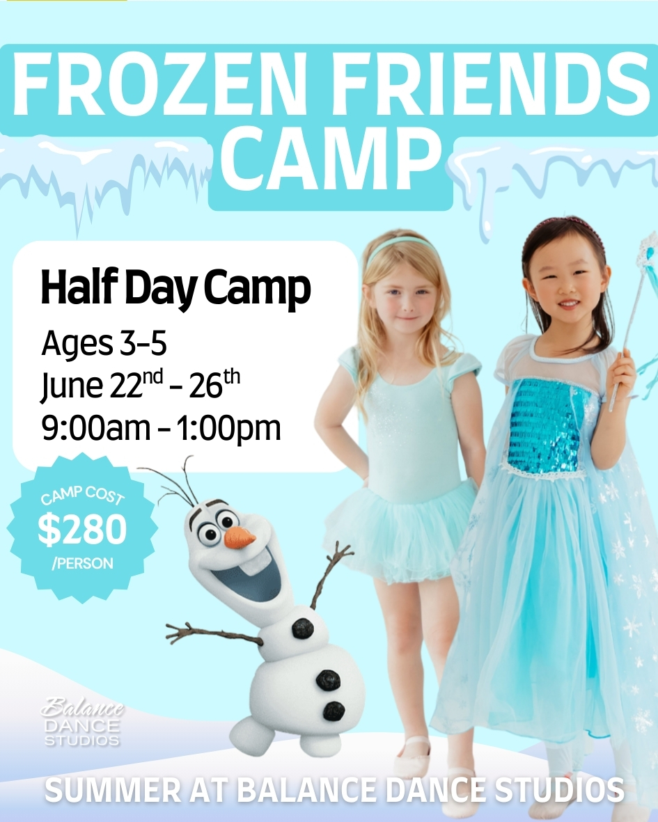 Step into a winter wonderland where dance sparkles with Frozen-inspired magic. This enchanting camp weaves beloved characters into choreography, games, and creative crafts that build confidence, coordination, and self-expression. Dancers twirl through imaginative movement, playful activities, and joyful moments that celebrate creativity and confidence—bringing the magic of Frozen to life through dance.