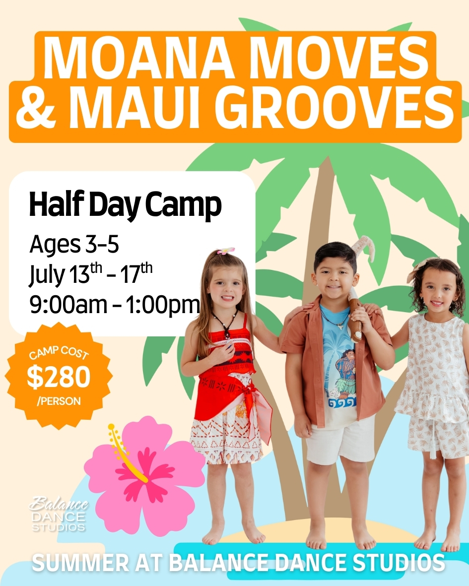 Set sail for an exciting dance adventure with Moana Moves and Maui Grooves! This enchanting camp invites little explorers to step into the magical world of Moana. Through creative movement, basic dance techniques, and playful games, your child will dance like Moana, groove like Maui, and discover the joy of expressing themselves through music.