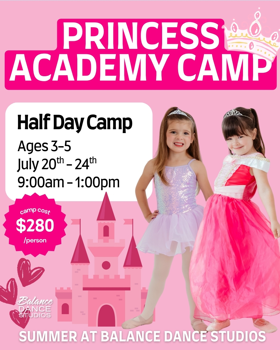 Calling all princesses! Princess Academy is a magical ballet-inspired dance camp that blends graceful movement with imaginative play, creative games, and delightful crafts. Dancers are introduced to ballet fundamentals through creative movement in a nurturing, confidence-building environment. Each day encourages self-expression, coordination, flexibility, and joy as dancers twirl, make new friends, and create unforgettable memories fit for royalty.